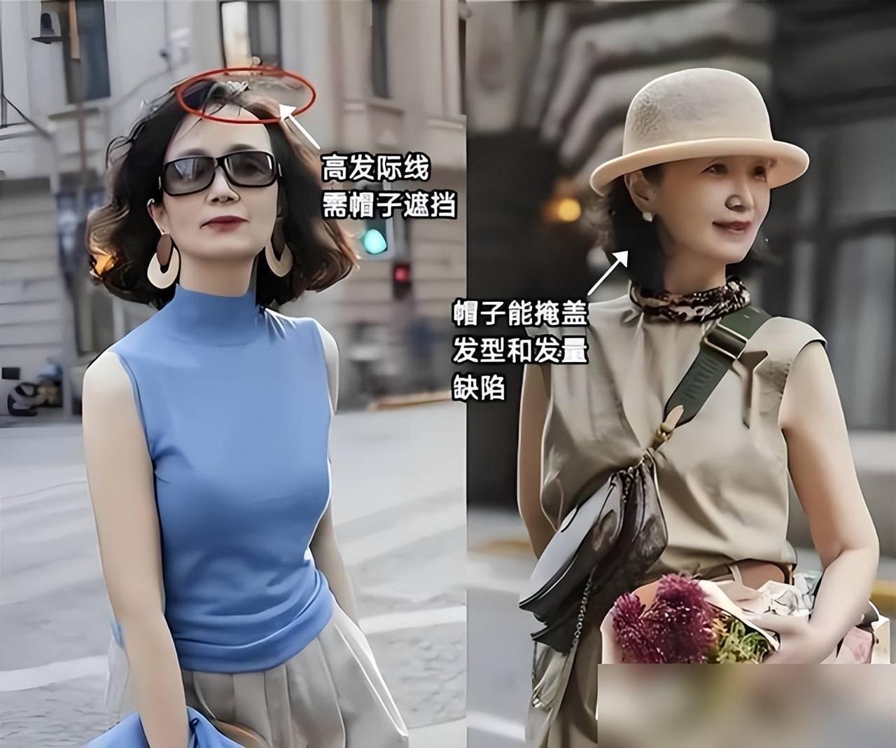 别轻信“时尚不看天气”这种说法,在大太阳下戴毛线、厚绒布材质的帽子,汗水会直往下流,头发都黏成绺,即便帽子再好看,也会显得狼狈不堪。亚麻、草编、网眼棉材质才是首选,风一吹凉丝丝的,戴着舒服比什么都重要。第二,帽型要适合脸型。圆脸的人别选择圆顶帽,可以试试V型帽檐的巴拿马帽,纵向拉长脸部线条,脸立马小一圈;长脸的人则选宽檐渔夫帽,横向平衡脸部比例,让五官更集中,显得精神。第三,颜色不要过于花哨。荧光色、大印花的帽子虽然显眼,但咱们这个岁数追求的是“不费力的高级感”,米白、浅棕、藏青等基础色,搭配任何衣服都不会出错,还能彰显气质。